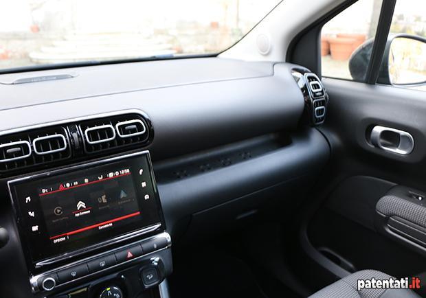 Soffermando lo sguardo sull’abitacolo si nota qualche economia qua e là. La plancia è molto simile a quella della C3, pur con qualche attenzione in più alla qualità percepita (la parte centrale rivestita in un materiale morbido al tatto), mentre i comandi del climatizzatore sono racchiusi nello schermo da 7 pollici del sistema multimediale, e l’operazione per cambiare temperatura o fare zapping con la radio è un po’ macchinosa.